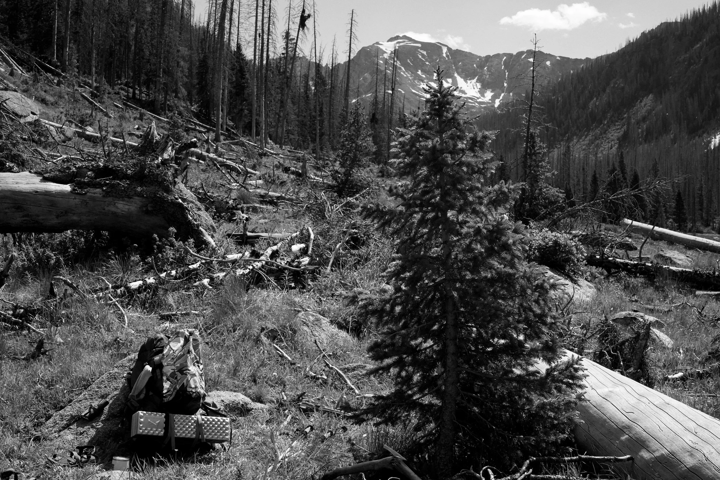 We stayed for a night and continued our quest the next morning. Two miles up the trail, we reached our final campsite, nestled at the base of a basin, surrounded by majestic mountain peaks and a stream for water and bathing.